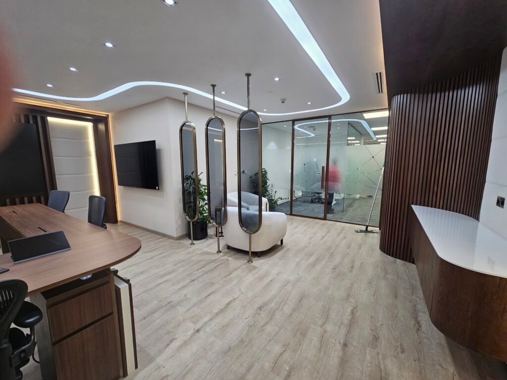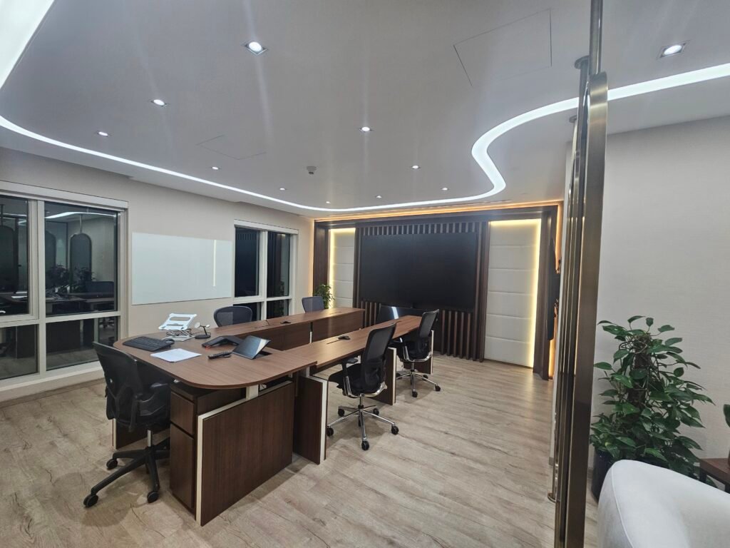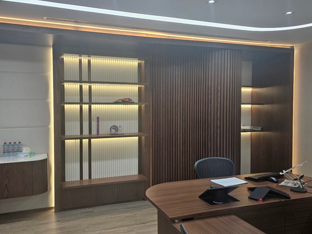 The scope included space planning, updated interior finishes, lighting upgrades, and customized joinery works to improve both aesthetics and usability. Special attention was given to material selection and layout design to ensure comfort, durability, and an organized workspace that supports executive and administrative functions.